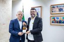 Manuel Flávio recebe a moção em homenagem a idealização da FLICART do Vereador Samuel Sanseverino